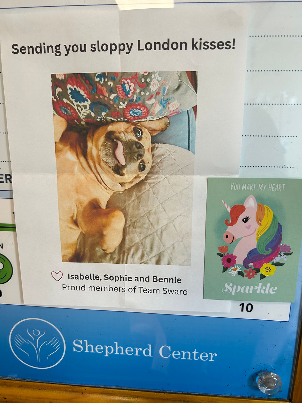 I was so amazed to see how many cards David has received from all of you! Thank you! I stood by his bed so I could see what he sees when he’s in it - wow. It was so powerful to see each of the fronts of the cards and realize that it was someone sending him love and strength. Every single card he’s received is up on the wall: they curve around from the window, all the way around to the wall in front of him. Keep em coming! What a great way to wake up in the morning or go to sleep at night with all of that love in front of you.